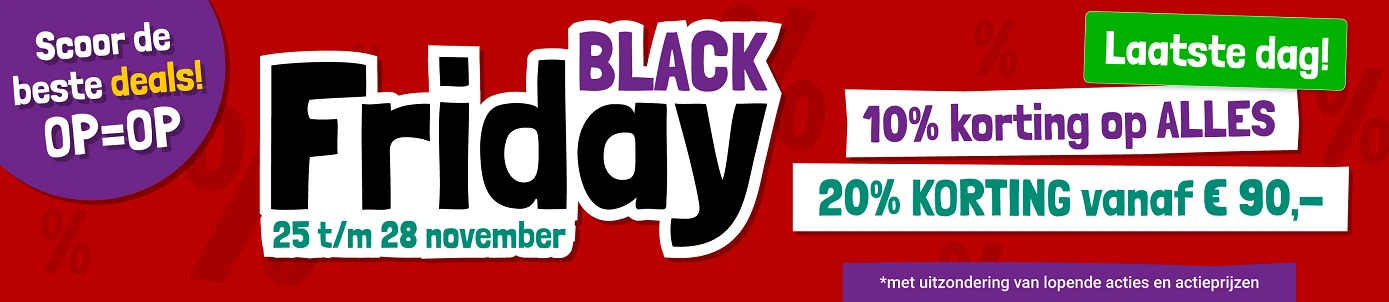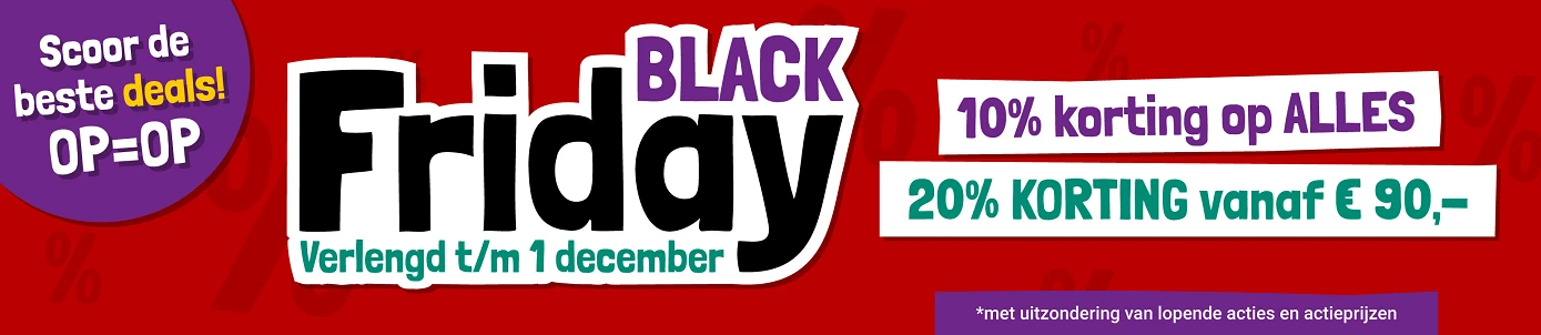 Voor alle producten geldt nu een korting van minimaal 10%. Bestel je voor 90 euro of meer, dan wordt dit zelfs 20% korting!