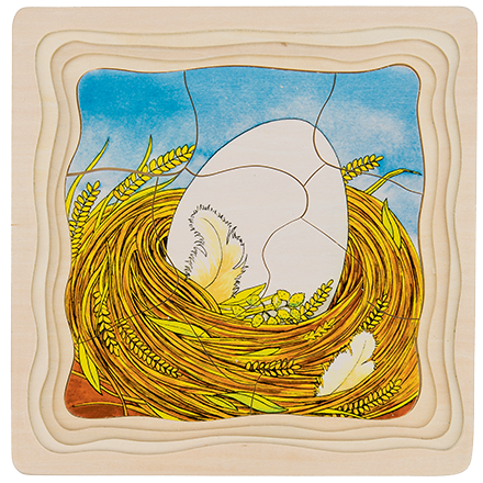 Bouw je puzzel op uit meer lagen, en leg steeds de volgende laag puzzelstukjes in elkaar. Zo ontdek je steeds een nieuw deel van het verhaal. Van kikkerdril tot volwassen kikker, of van rups tot vlinder; elke fase is in een volgende puzzellaag getekend. Ook de verschillende seizoenen zijn bijvoorbeeld in verschillende puzzellagen verdeeld.